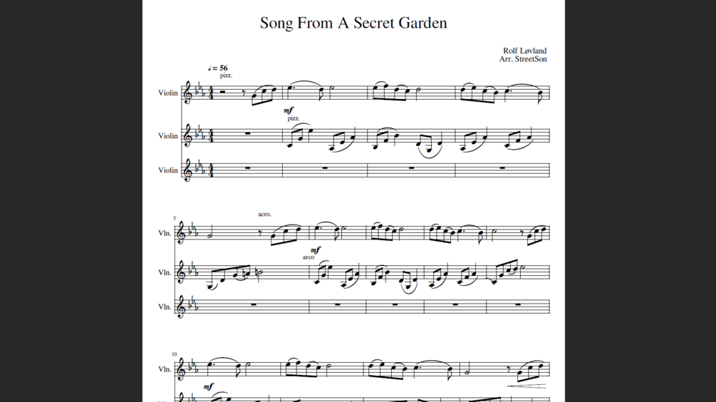 http://www.streetson.info/score-list/Song-from-a-Secret-Garden---Violin-Duet%2F-Trio